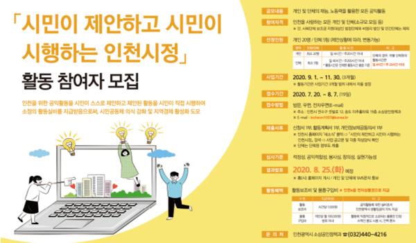 인천시(시장 박남춘)는 오는 7월 20일부터 8월 7일까지「시민이 시행하고 시민이 제안하는 인천시정」(이하 “시민시정”이라고 한다.)에 참여할 개인 및 단체를 모집한다고 밝혔다.