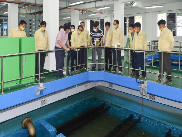 이날 점검에는 조광한 시장과 현호권 상하수도관리센터장, 관계 부서 공무원들이 참석했으며, 조 시장은 이대열 수도과장으로부터 시에서 운영하고 있는 정수장과 배수지를 대상으로 실시한 점검 상황과 대책에 대해 보고받고 응집지, 침전지, 여과지, 오존지, 활성탄 흡착지, 차염소독실 및 배수지까지 정수처리 전체 공정을 꼼꼼하게 확인했다.